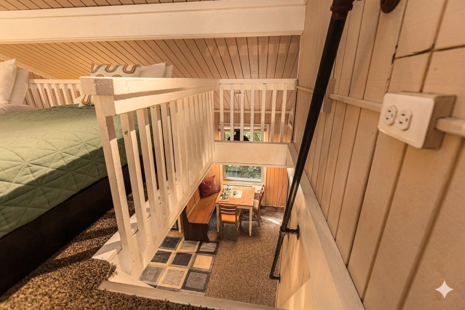 Loft area accessible by ladder with 2 twin beds for a private kids’ space